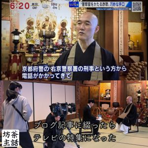 昨日お寺で取材を受けたら今夜放送がありました。