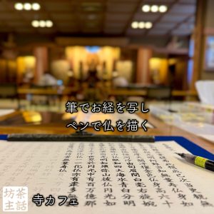 お寺の本堂で心を静めて写経や写仏や切仏を体験して