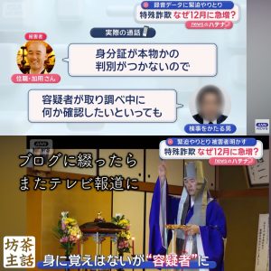 先月12日に特殊詐欺事件容疑者に仕立てられた