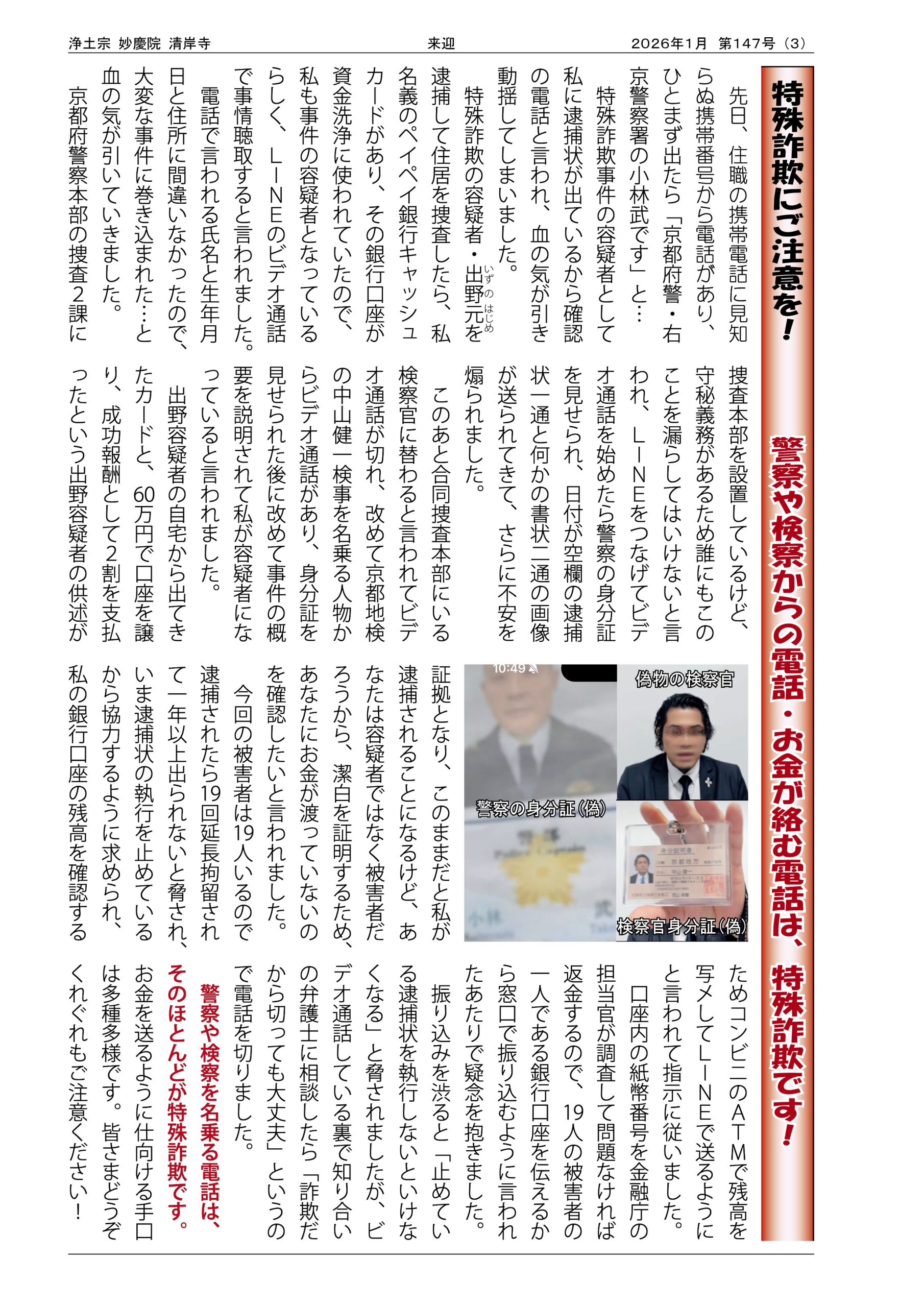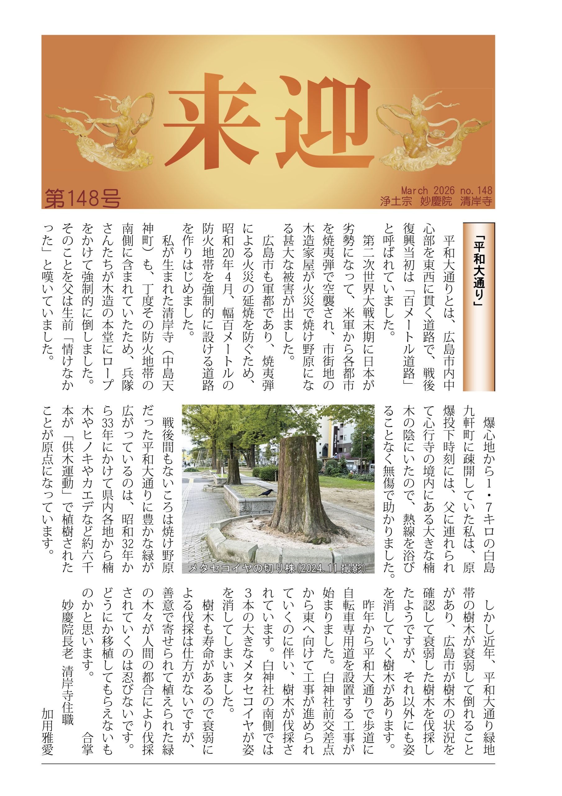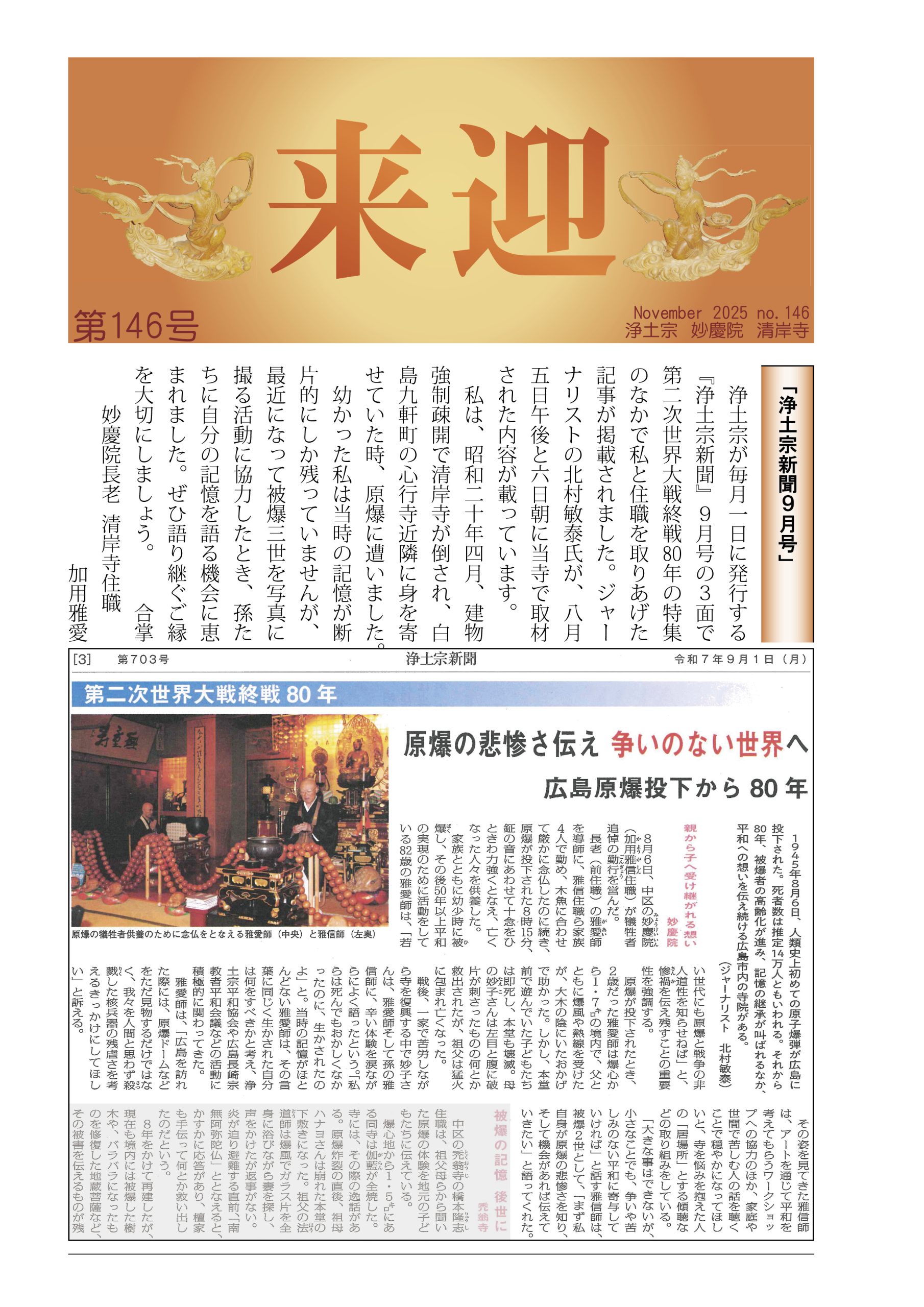 奇数月発行の、お寺の話題や行事のご案内等、お寺に関する耳寄り情報を掲載している寺報です。 お寺の3階納骨堂にて無料でお配りしていますので、ぜひ手にとってご覧ください。